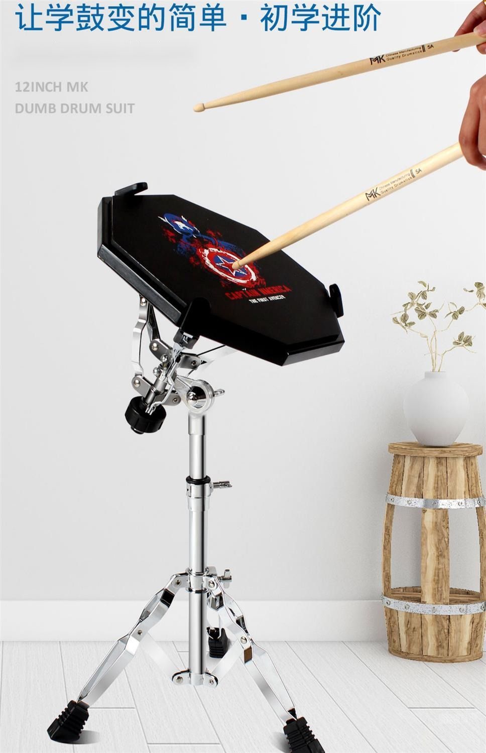 器架子鼓练习鼓初学入门打击板亚鼓黑色哑鼓军鼓架鼓棒打击贴12英寸