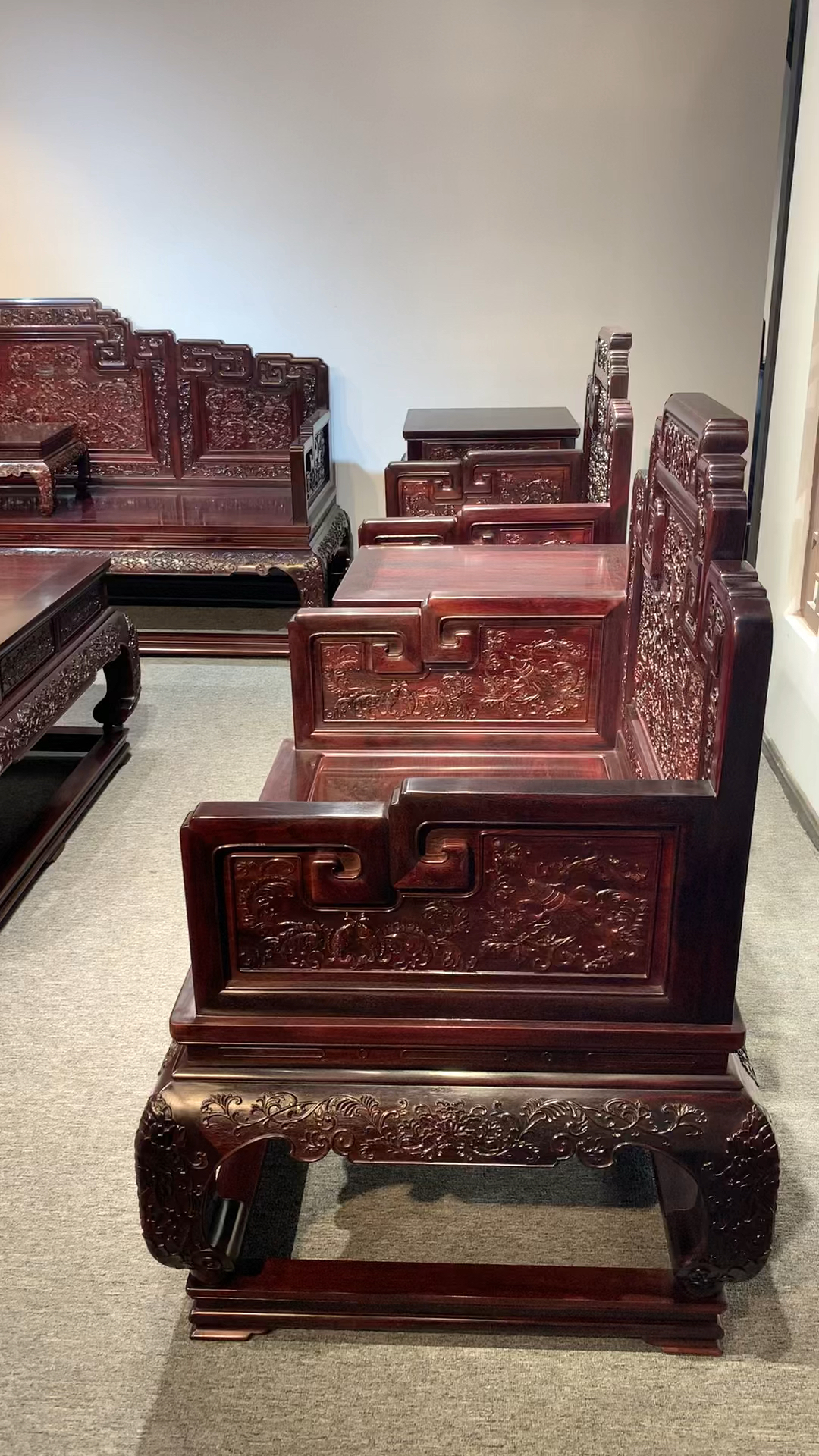 印度小叶紫檀国宾款沙发十三件套 三人座:216*72*43* - 抖音