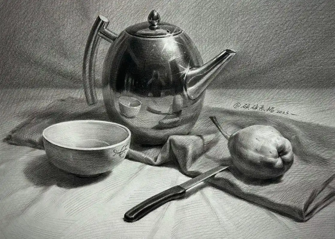 不锈钢#素描静物 #美术生 - 抖音