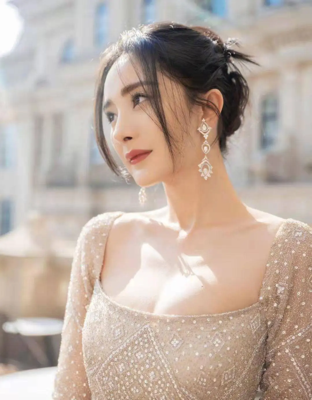 杨幂颜值回春!穿亮片粉西装高调参加活动嫩成少女,大长腿好吸睛