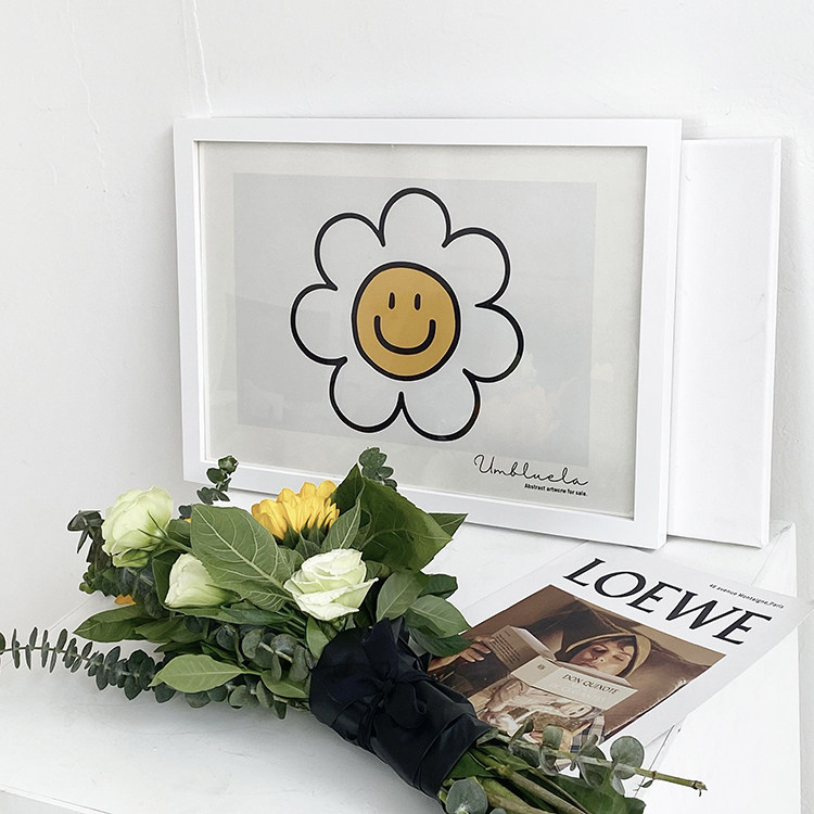 一天好心情笑脸加花朵生日礼物美好寓意的宿舍办公室简约装饰画