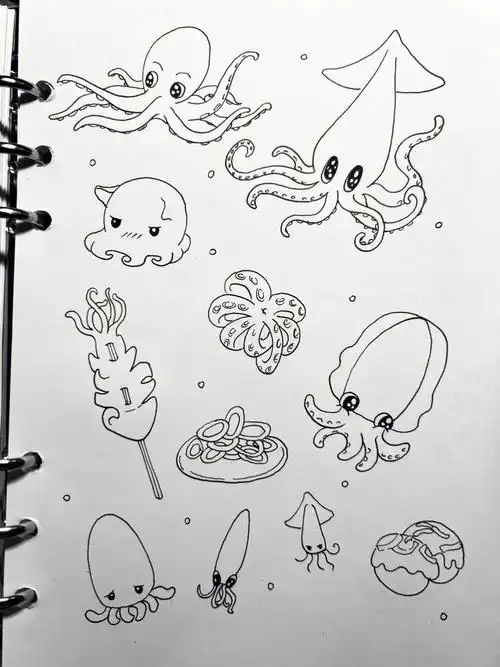 11100挑战100张简笔画素材海洋生物鱿鱼