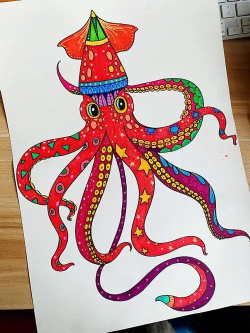 马克笔原创儿童绘画内容优雅的乌贼