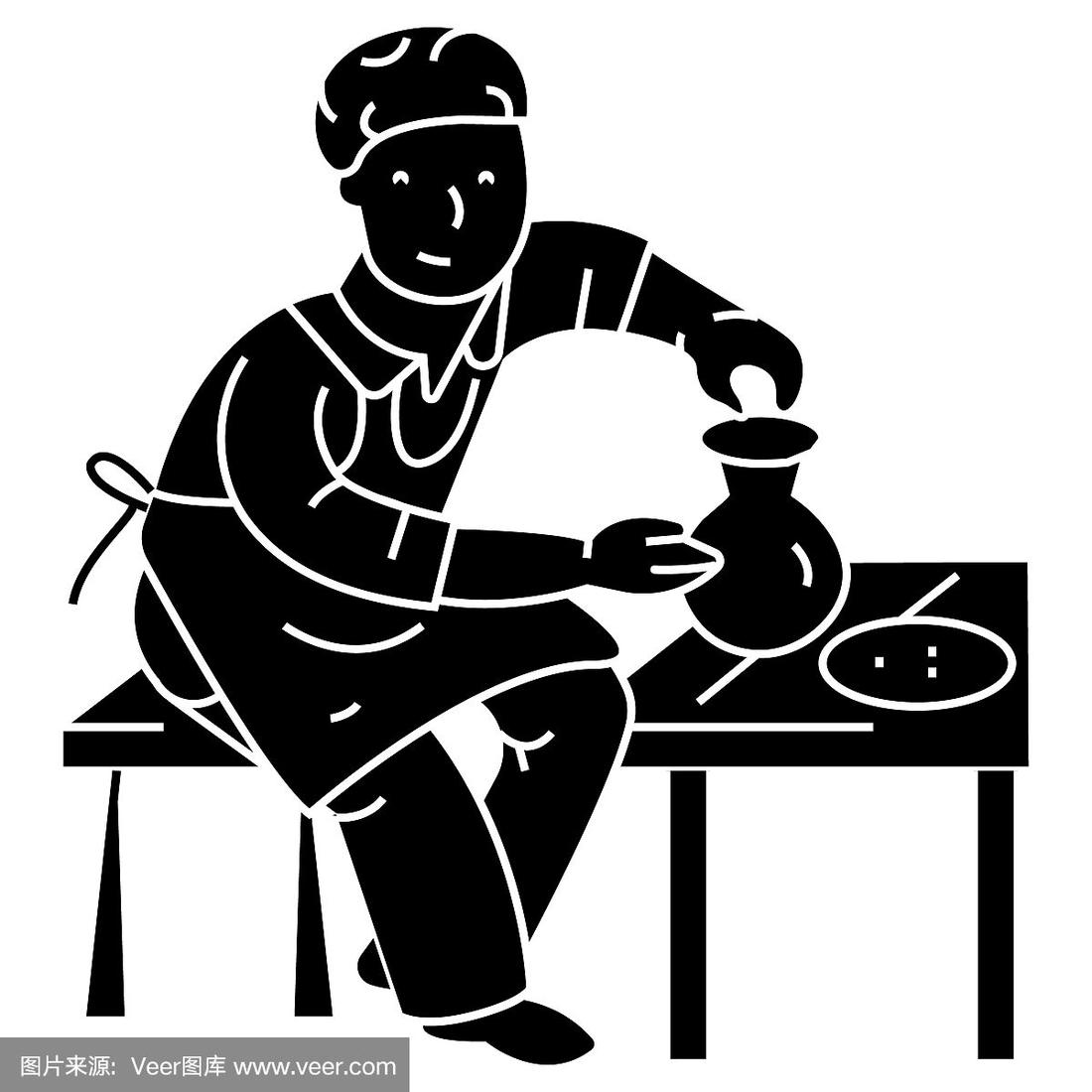 陶器,陶工,陶艺家图标,矢量插图,标志上孤立的背景