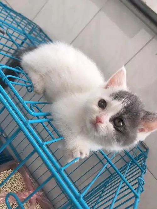 刚出生2个月的蓝白公猫,颜值高,欢迎领养!1500元