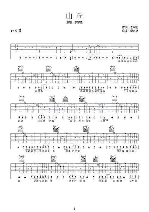 山丘吉他谱_李宗盛_c调_吉他简谱 - 曲谱歌词网