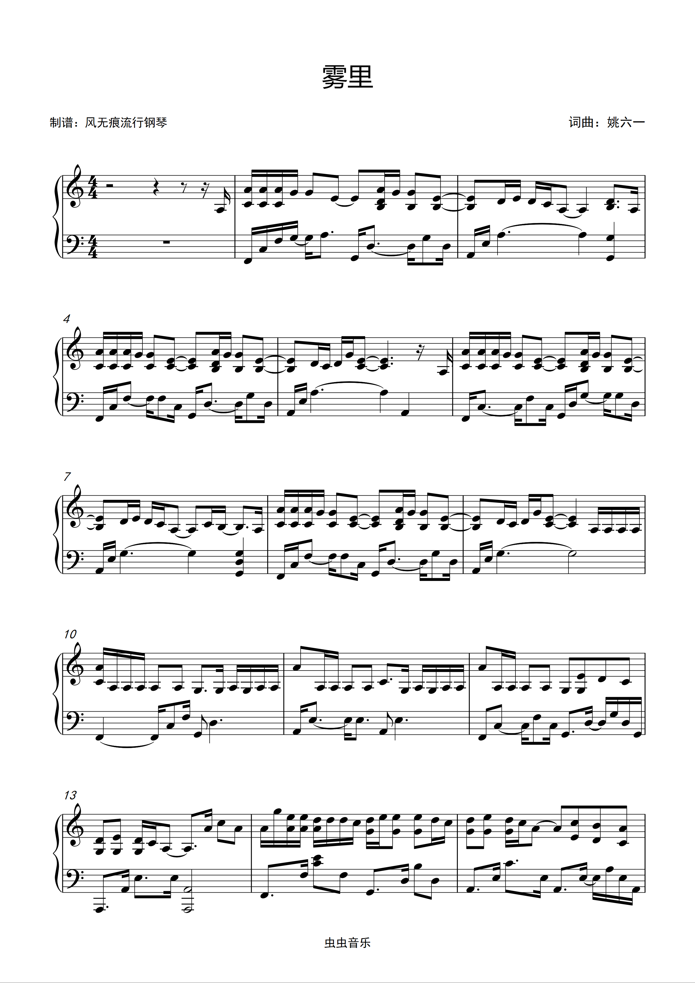 c调-雾里-姚六一〖丰富版〗钢琴谱-虫虫钢琴