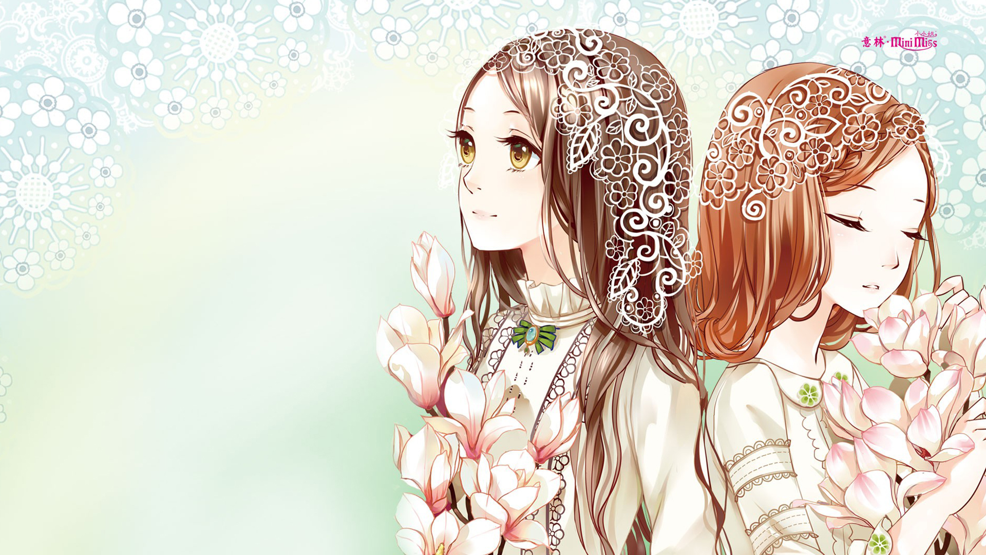 两个可爱女生香草花儿姐妹动漫桌面壁纸