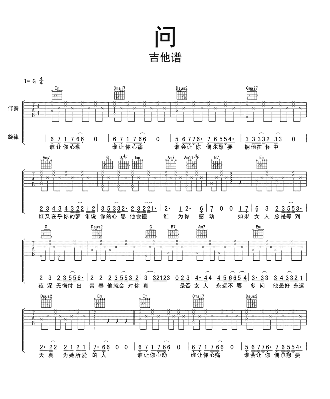 问吉他谱