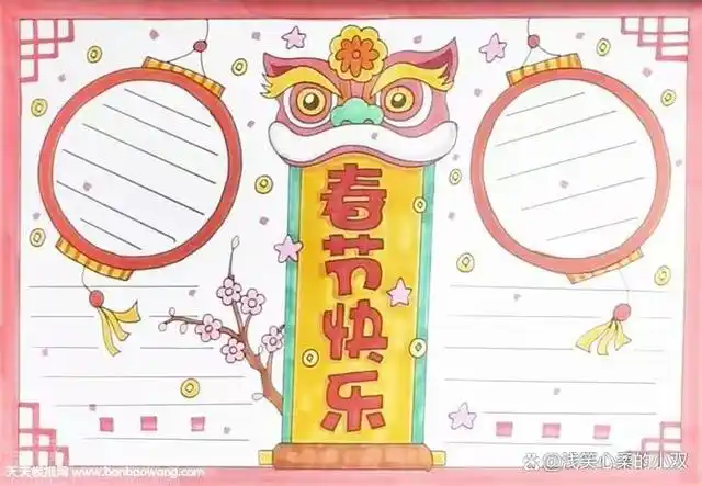手抄报超话 春节手抄报 新年手抄报 龙年手抄报 除夕手抄报 2024