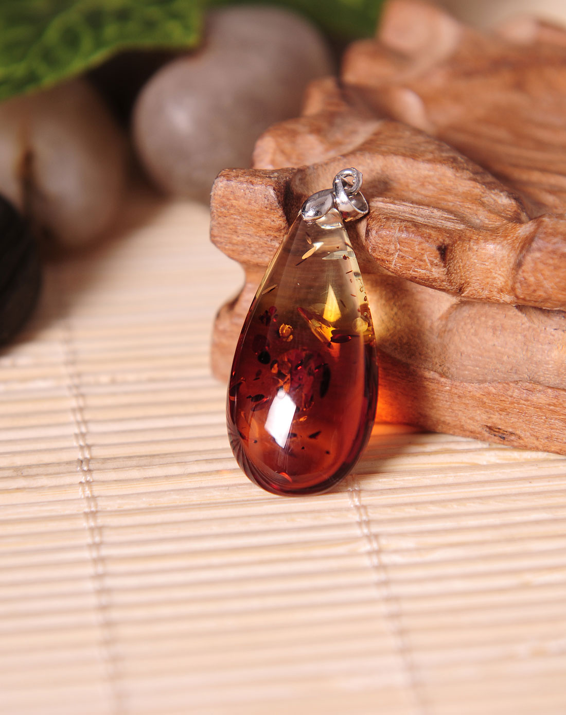 落英缤纷天然琥珀双色花珀水滴吊坠(附珠宝鉴定证书)