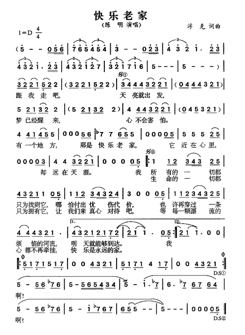 陈明快乐老家简谱,陈明快乐老家歌谱,陈明快乐老家歌词,曲谱,琴谱