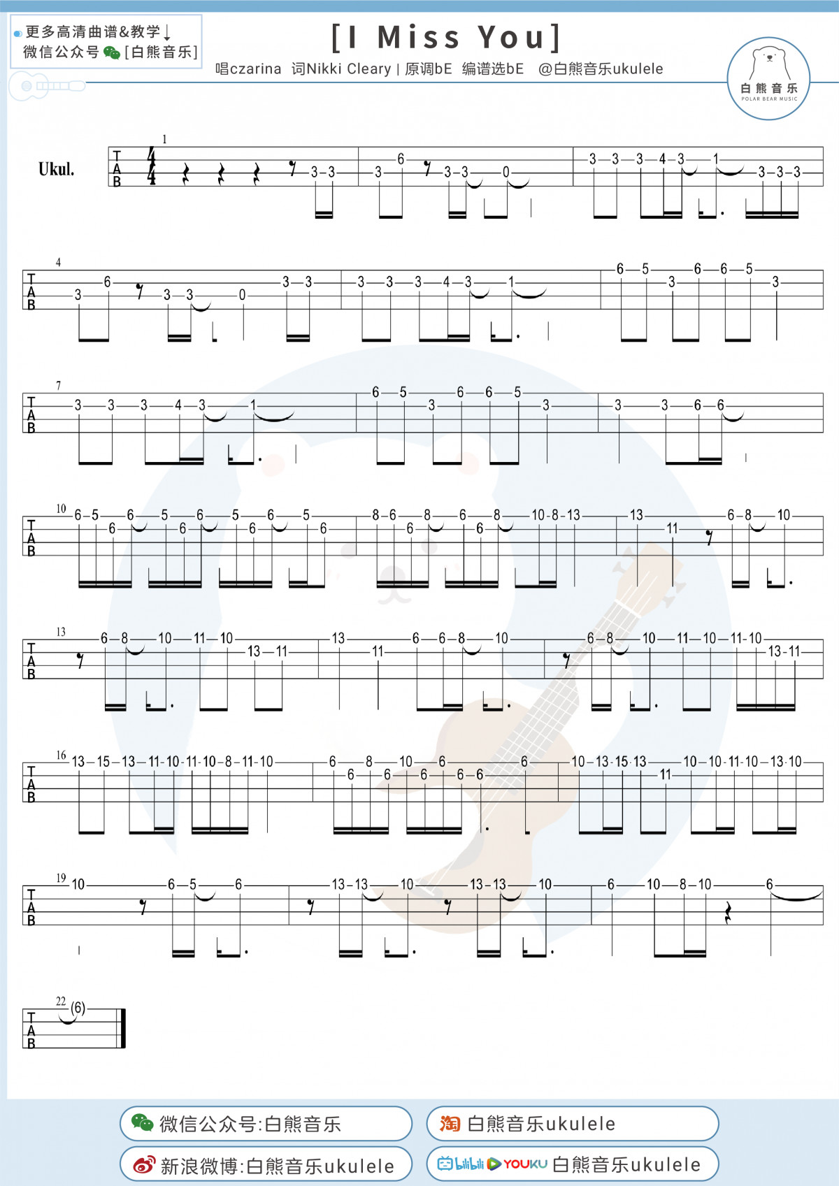 czarinaimissyou尤克里里谱指弹示范视频教学白熊音乐