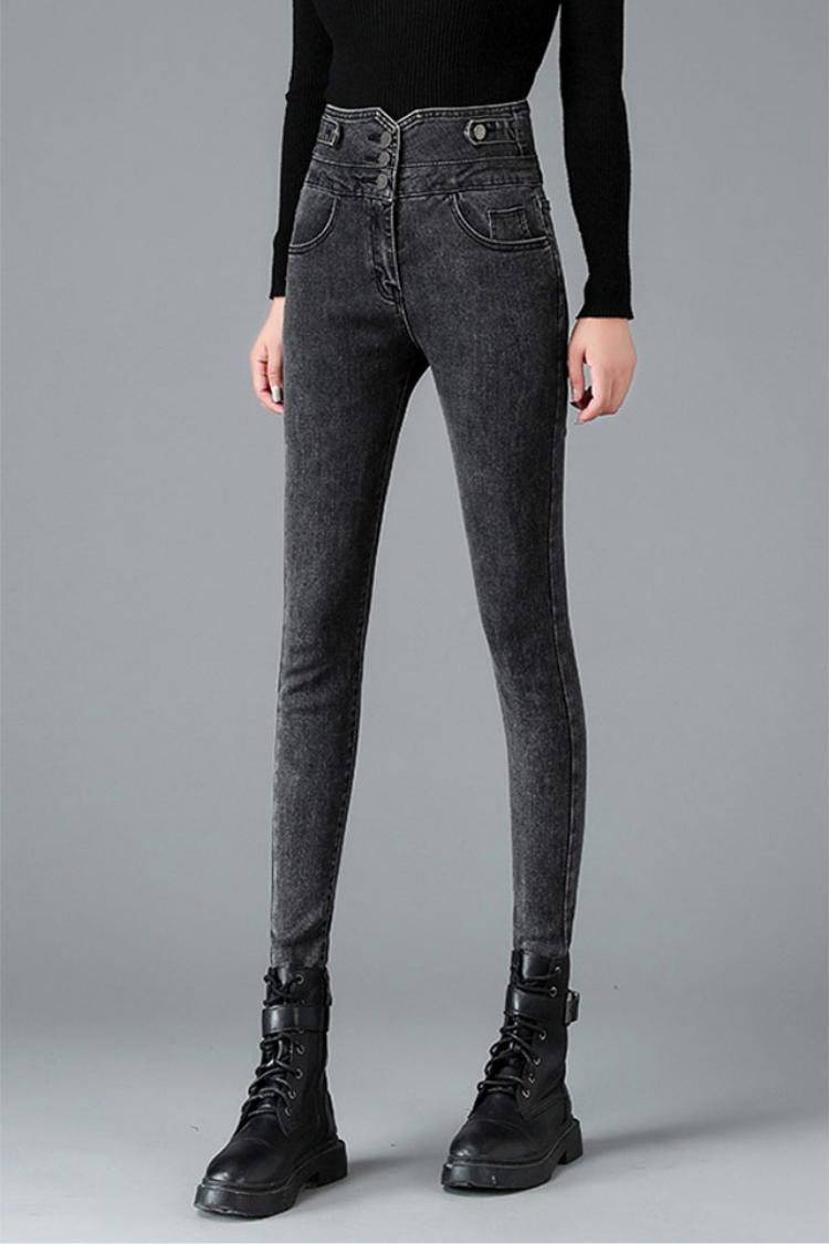 逸阳高腰牛仔裤女2021年秋冬紧身显瘦烟灰色加绒小脚铅笔裤4512冬季50