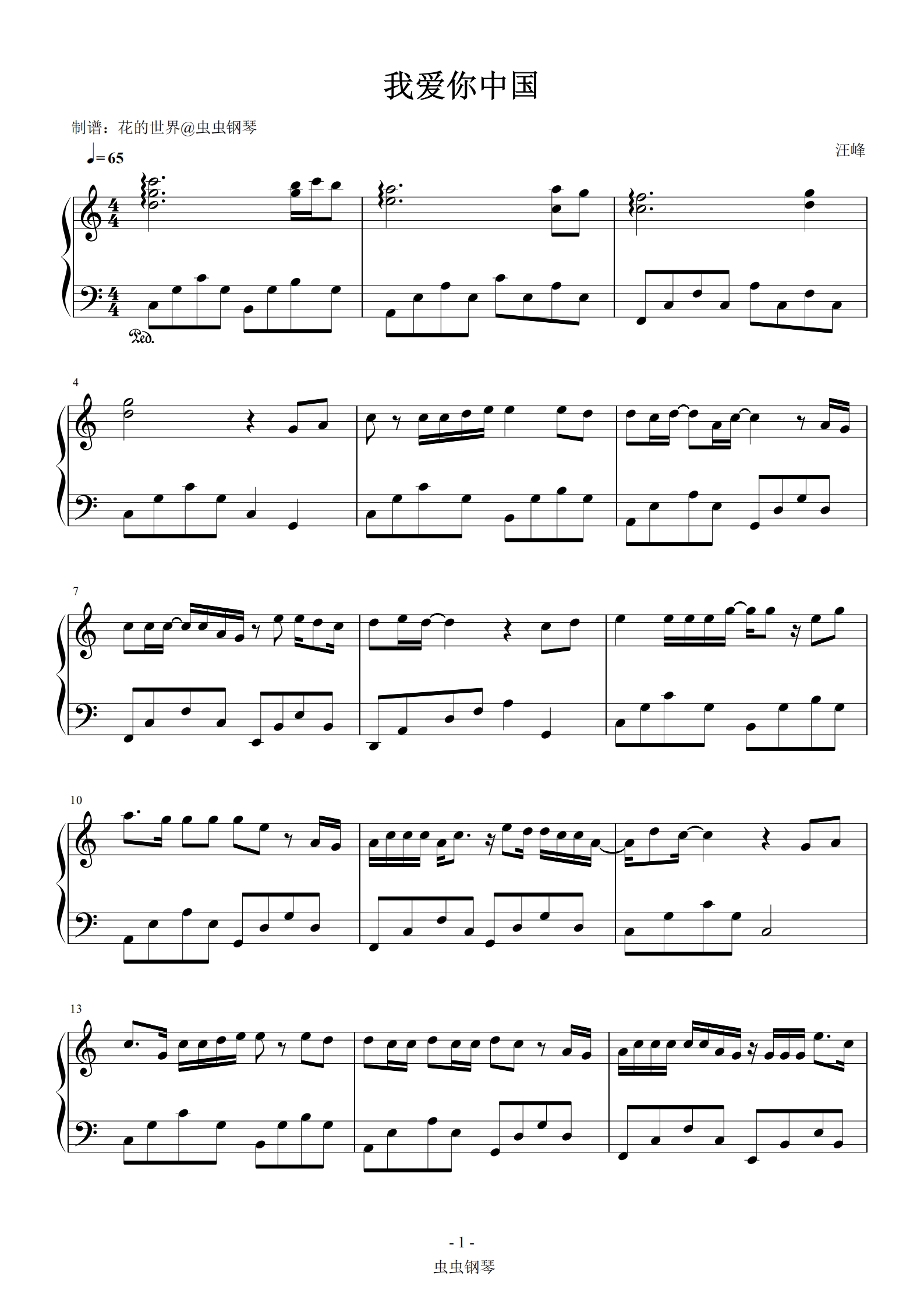 我爱你中国钢琴谱简易版-汪峰
