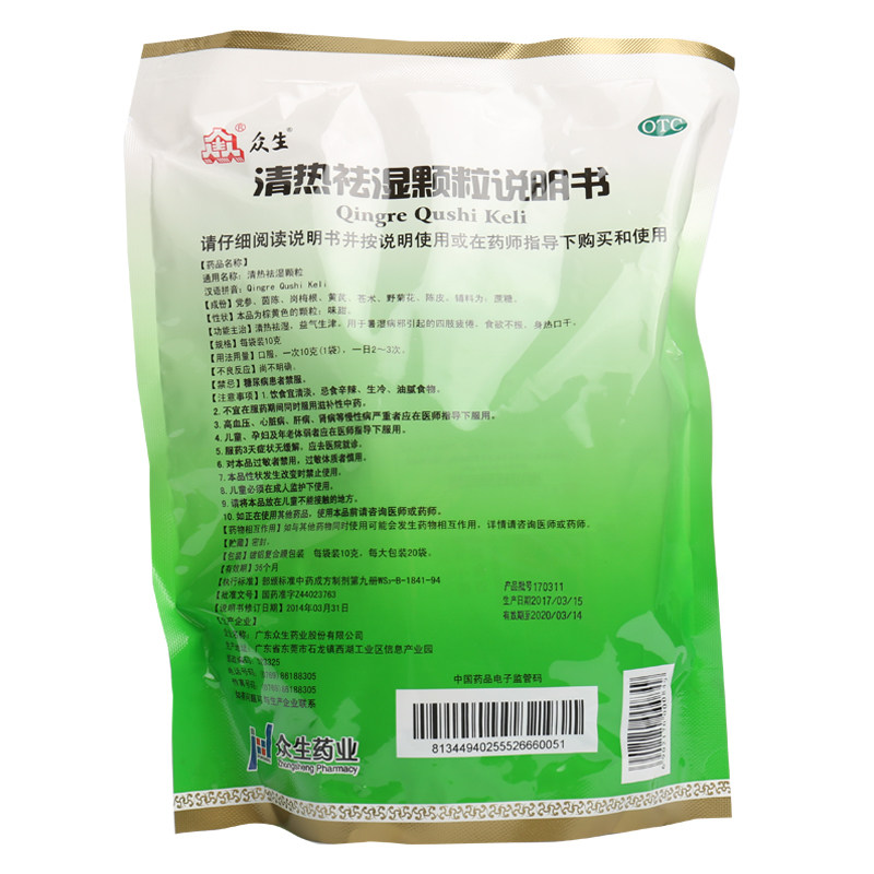 颗粒药店正品众生清热祛湿解热降暑去湿湿气解热镇痛