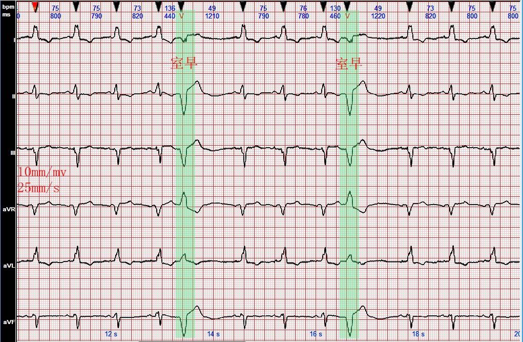 患者入院心电图,提示为窦性心律,完全性左束支传导阻滞,qrs波明显