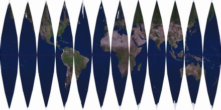 一个地球仪被分成了 片纺锤形的贴纸,下面是展开图,一围起来就是