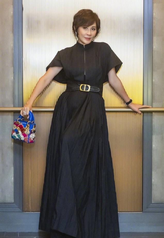 原创刘嘉玲气场全开,穿黑色连衣裙现身活动身材凹凸感十足,优雅大方