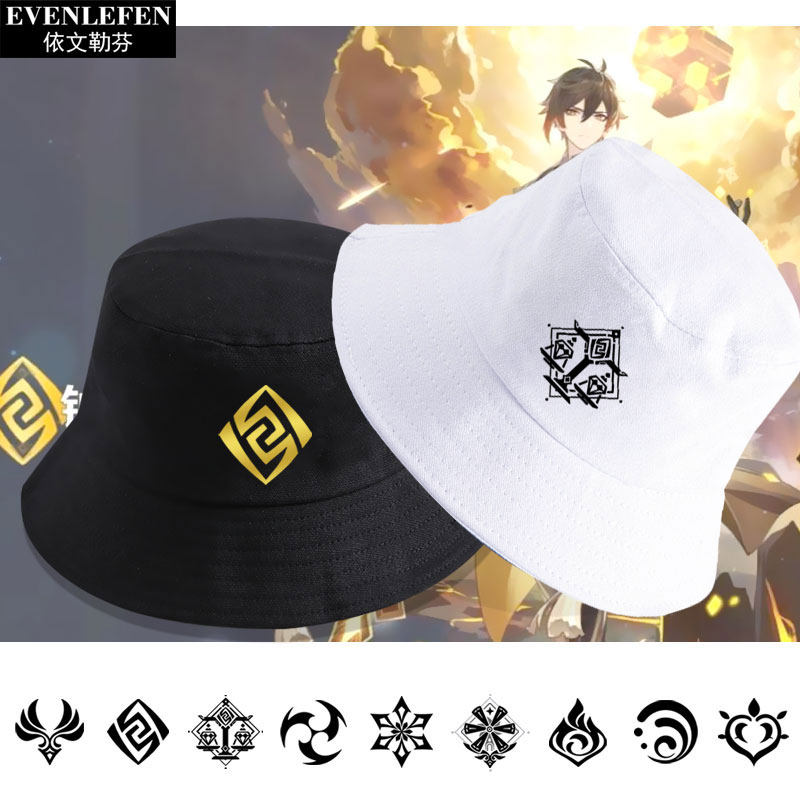 璃月钟离蒙德可莉骑士团标志温迪原神渔夫帽子男女学生盆帽遮阳帽