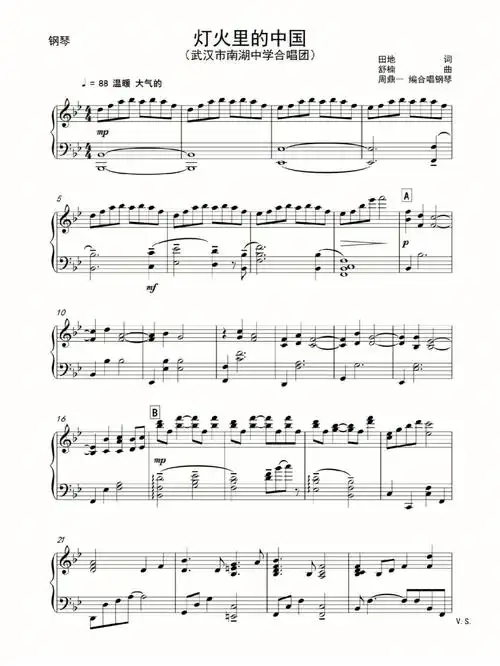 灯火里的中国c(二声部合唱钢伴)钢琴谱-c调-虫虫钢琴