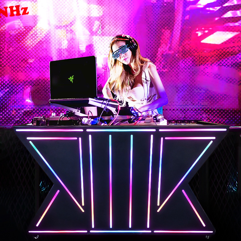 网红酒吧dj台ktv派对包房发光打碟台夜店led可移动铁艺亚克力打碟