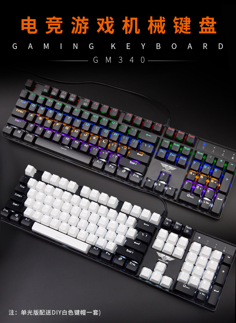 新贵gm340青轴混光全键无冲机械键盘