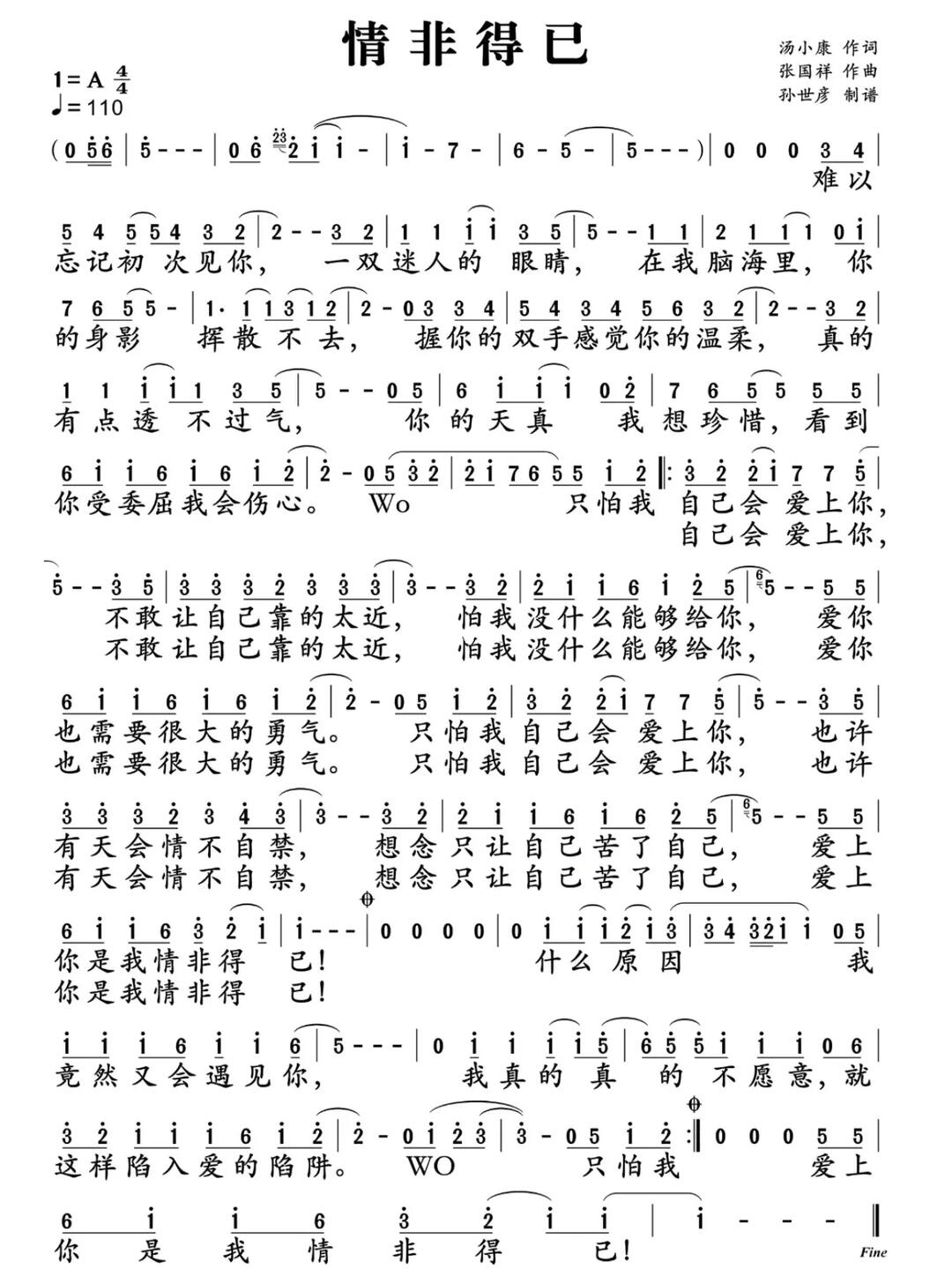 情非得已_简谱_搜谱网