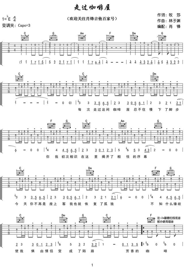 经典老歌《走过咖啡屋》吉他谱分享(文内附弹唱视频链接)