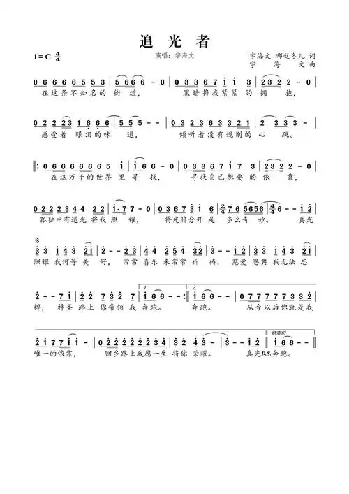 追光者官方简谱