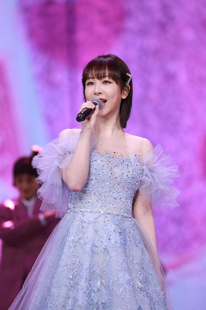 杨紫身穿冰蓝色刺绣纱裙助阵跨年夜晚会 灵动优雅温柔似水