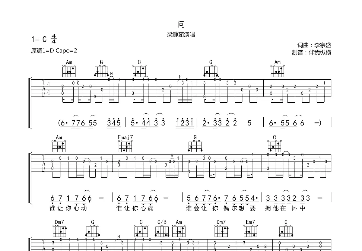 问吉他谱_梁静茹_c调指弹吉他谱 - 吉他世界