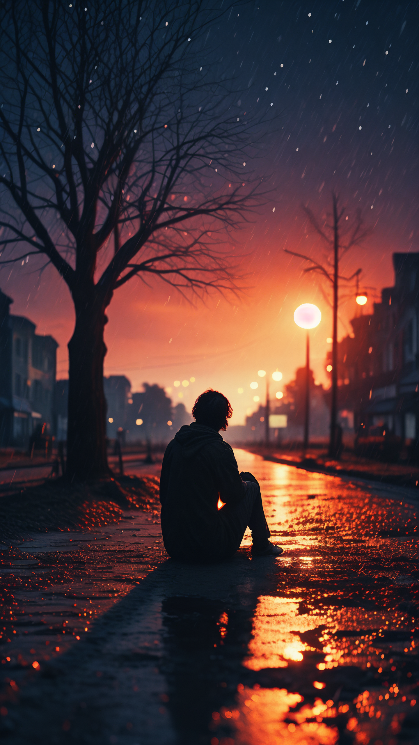 92夜晚灯光下的伤感心碎壁纸91 在寂静的夜晚,灯