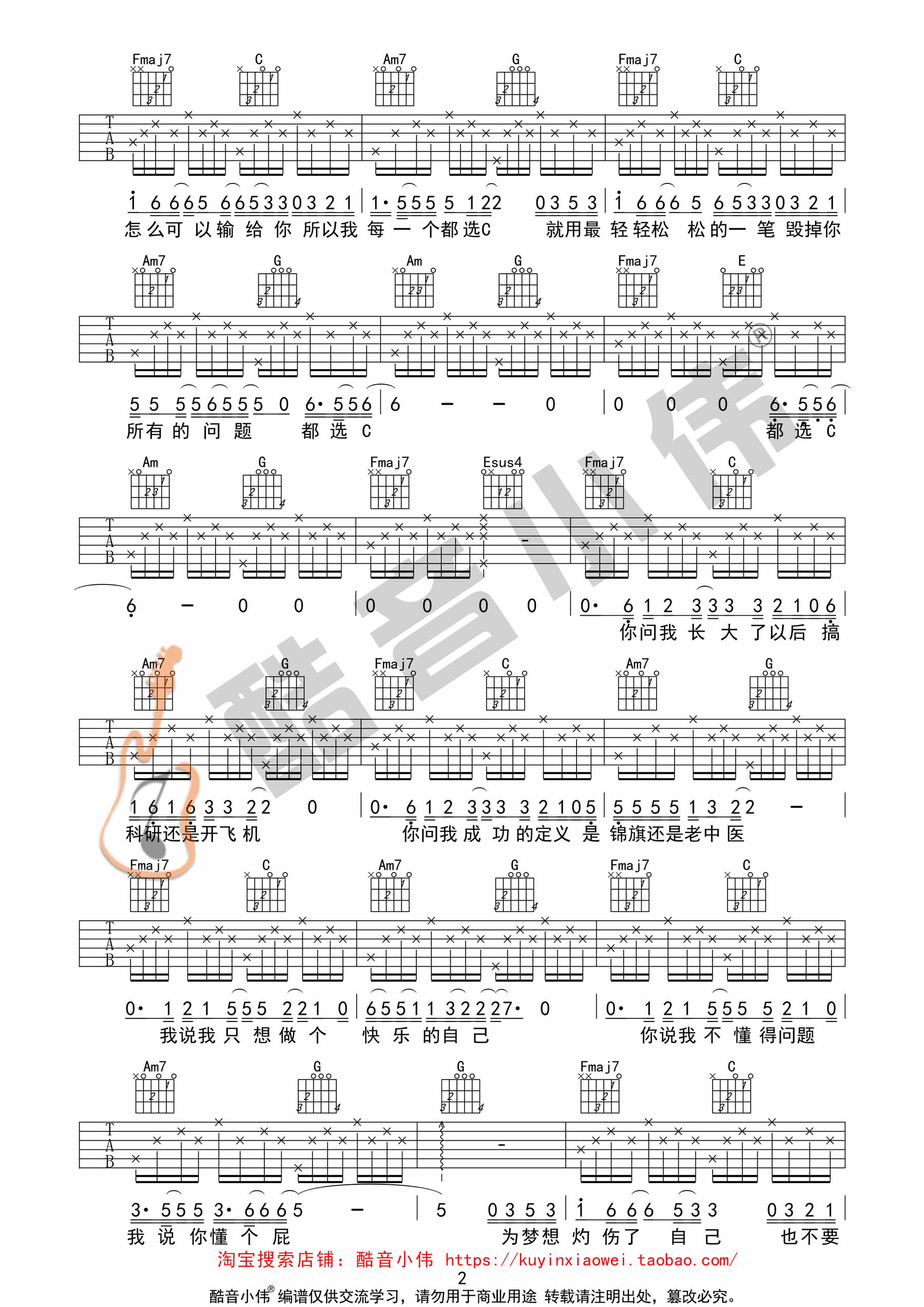 都选c(酷音小伟吉他弹唱教学)吉他谱(图片谱,酷音小伟,弹唱,c调)_大鹏