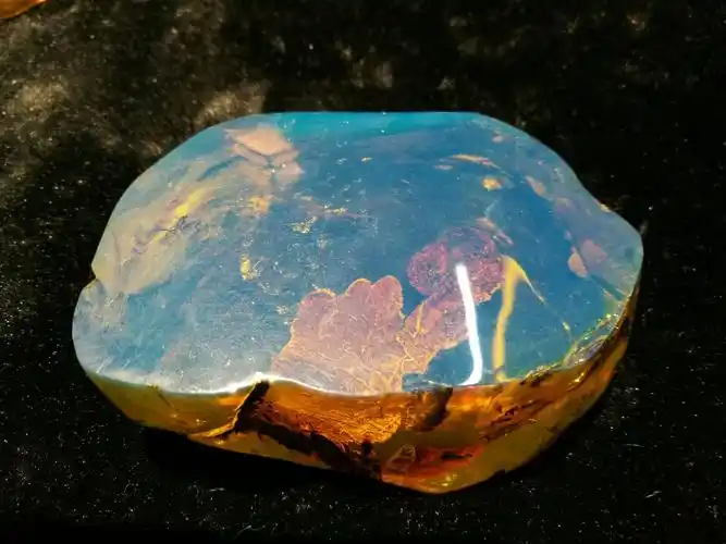 自然光下浅色背景下的金蓝珀(图片来源于网络)