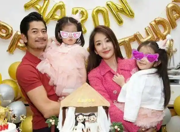 方媛晒一家四口日常跟老公合照秀恩爱郭富城抱娃父爱满满