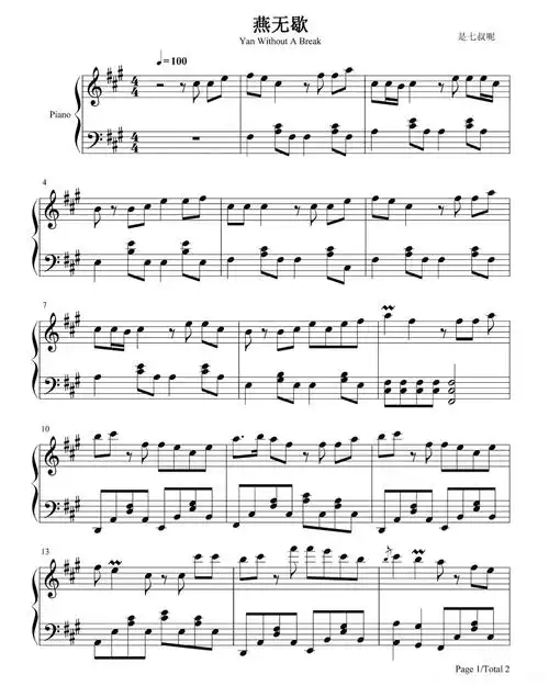 燕无歇钢琴谱