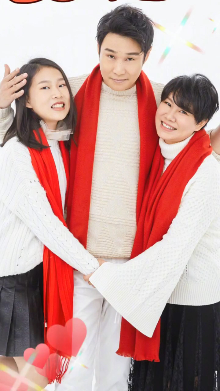 小品演员小沈阳的全家福: 女儿跟媳妇长的一模一样 他和媳妇特别有