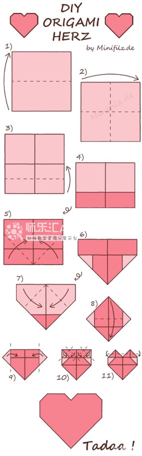 用正方形折一只大爱心吧!一步一步学趣味折纸-红豆饭小学生简笔画大全