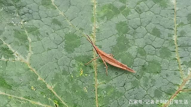 今天我和小伙伴一起捉到一个绿油油的昆虫,名叫扁担钩 ,它全身绿绿的.