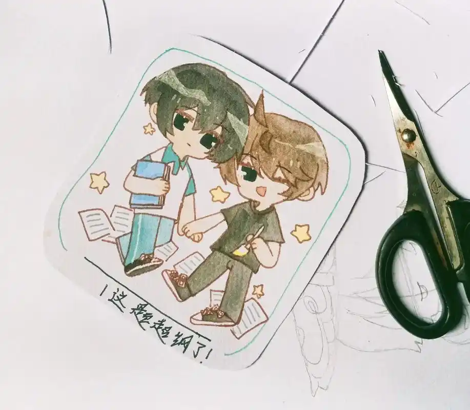 水彩 #q版人物 这题超纲了,许盛 邵湛 - 抖音