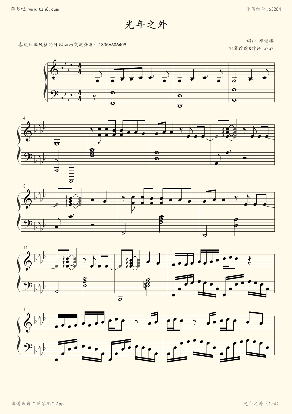 钢琴谱:光年之外