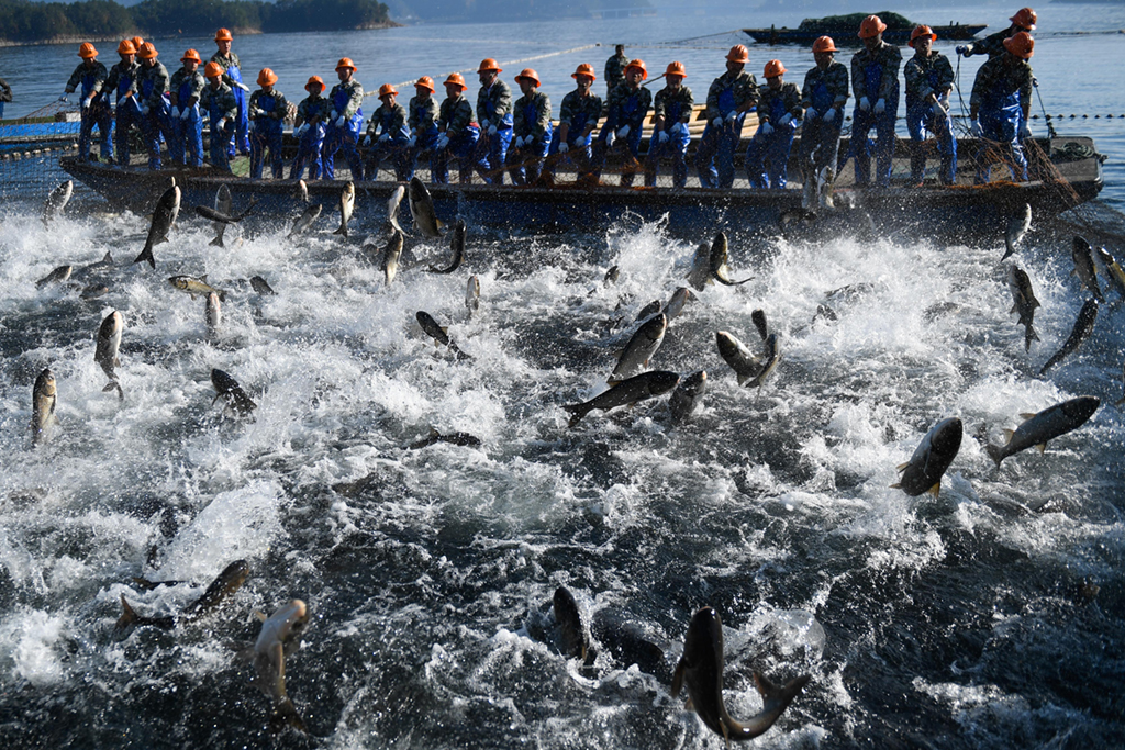 巨网捕鱼万鱼跃起盛况空前!千岛湖渔业2017再获丰收!