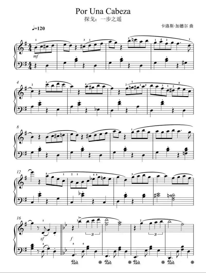una cabeza 一步之遥,钢琴谱》b站znger版,carlos gardel(五线谱 简谱