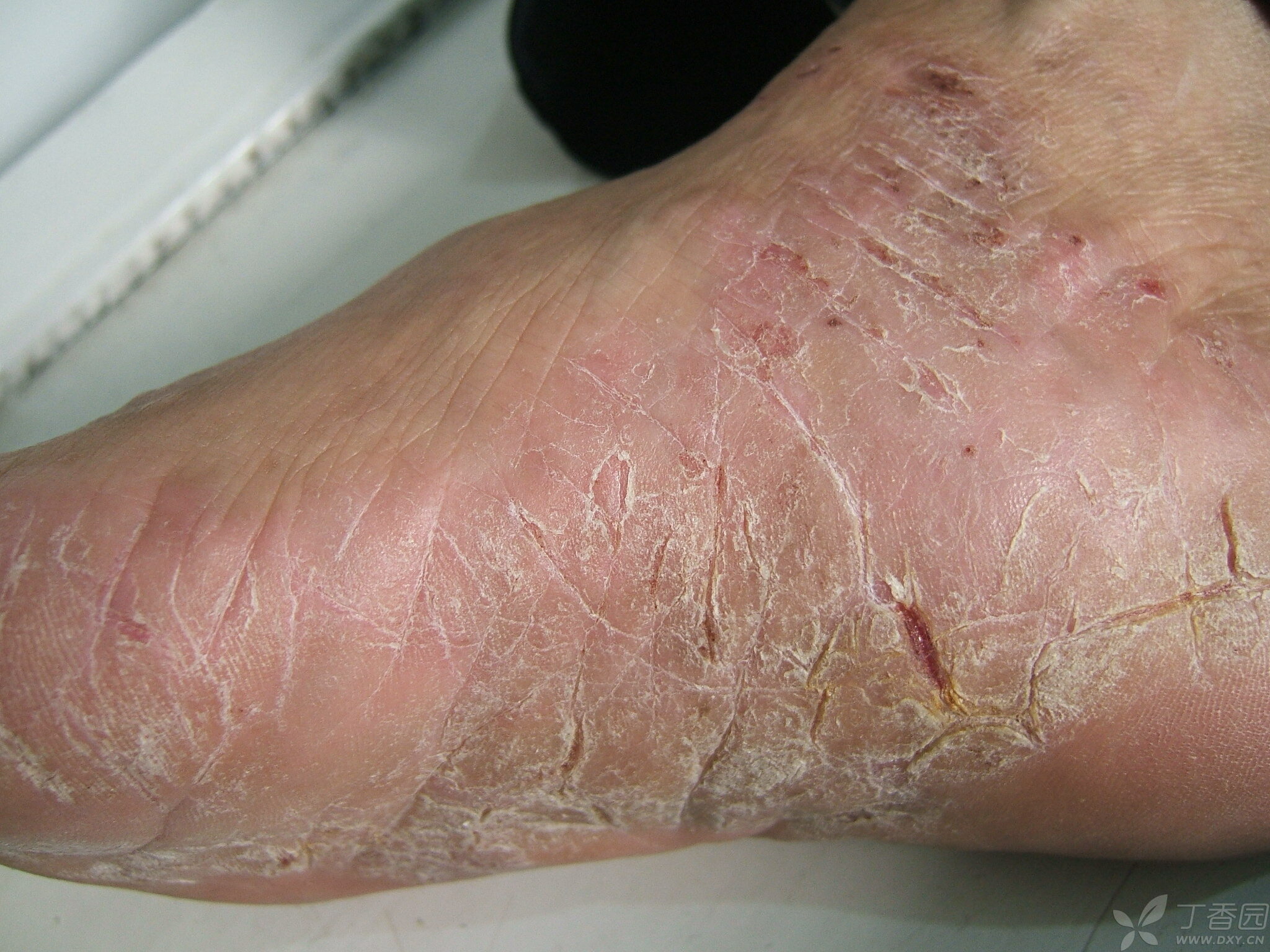 染料,油漆等引起,导致皮肤水分脱失,皮脂分泌减少,引起局部干燥皲裂的