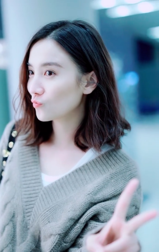 宋佳穿灰色毛衣内搭白t笑容灿烂星范十足穿搭时尚满分