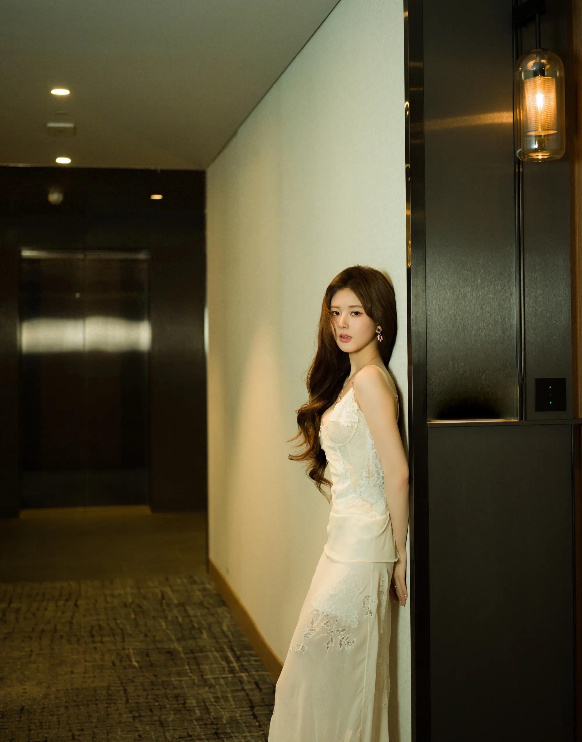 赵露思白色吊带连衣裙性感写真_美得_网友_长发