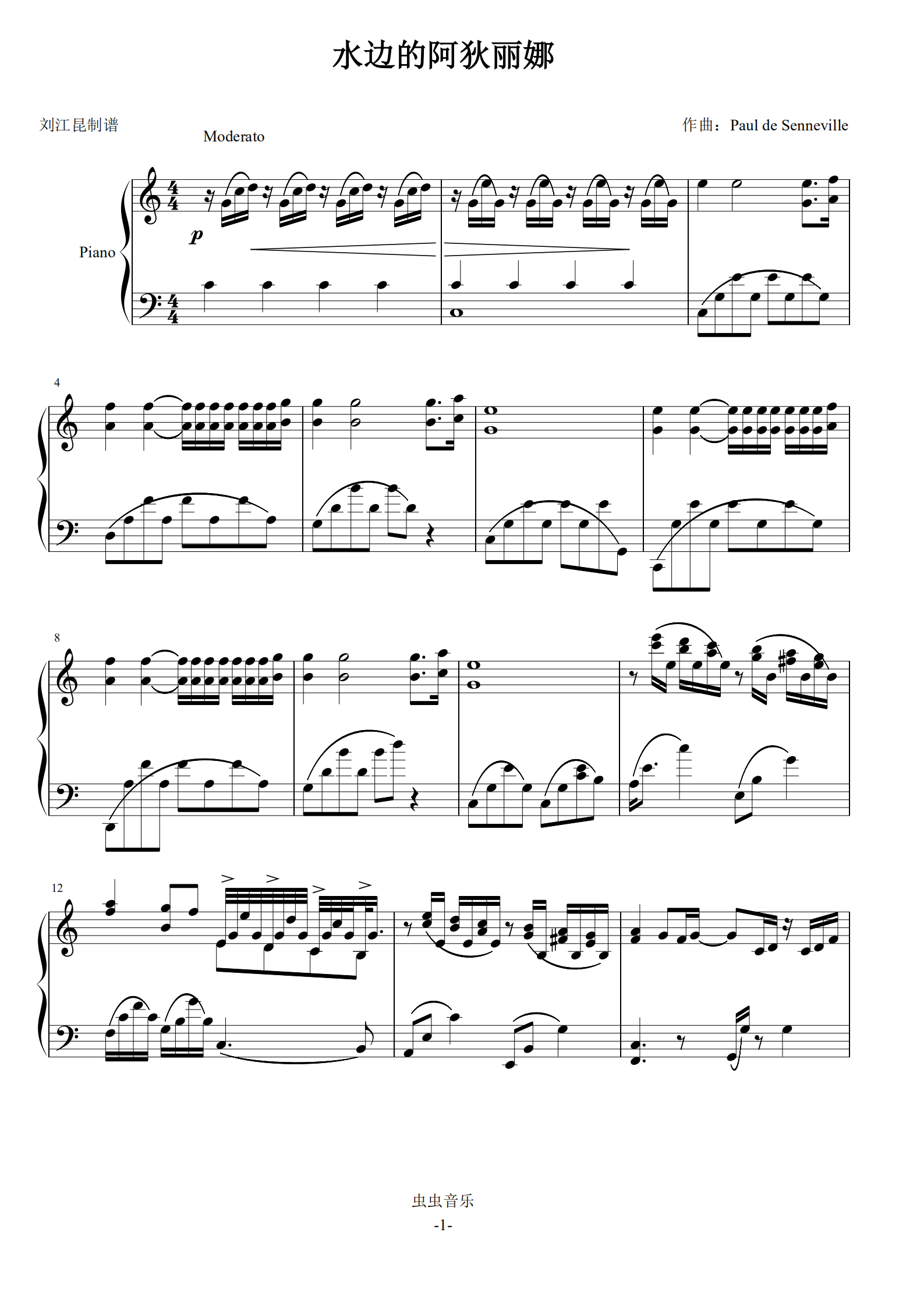 水边的阿狄丽娜(原版 高清)钢琴谱-c调-虫虫钢琴