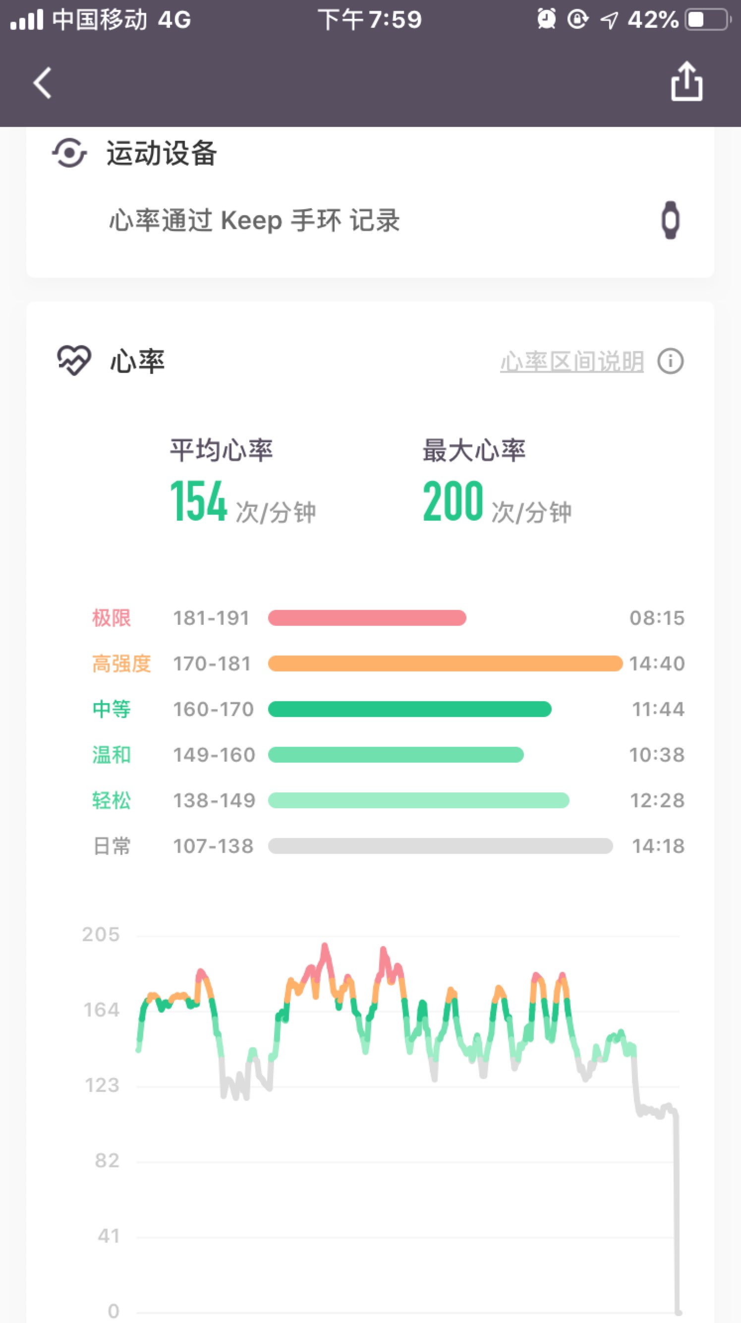 keep手环心率记录: 椭圆仪热身10分钟 45分钟单车 今日体重129.