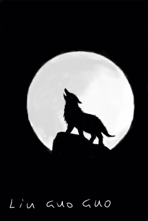 月圆咆哮的狼